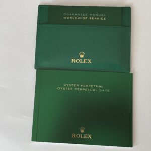 Този нов комплект книжки включва гаранционен мануал и кожен калъф, специално проектиран за часовниците Rolex Oyster Perpetual. Изработен от висококачествени материали, комплектът е идеален за съхранение на важната документация на вашия часовник.