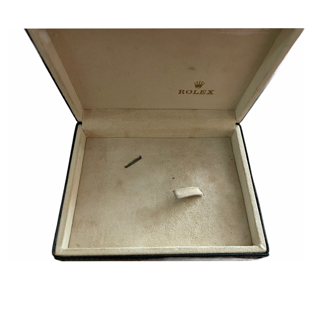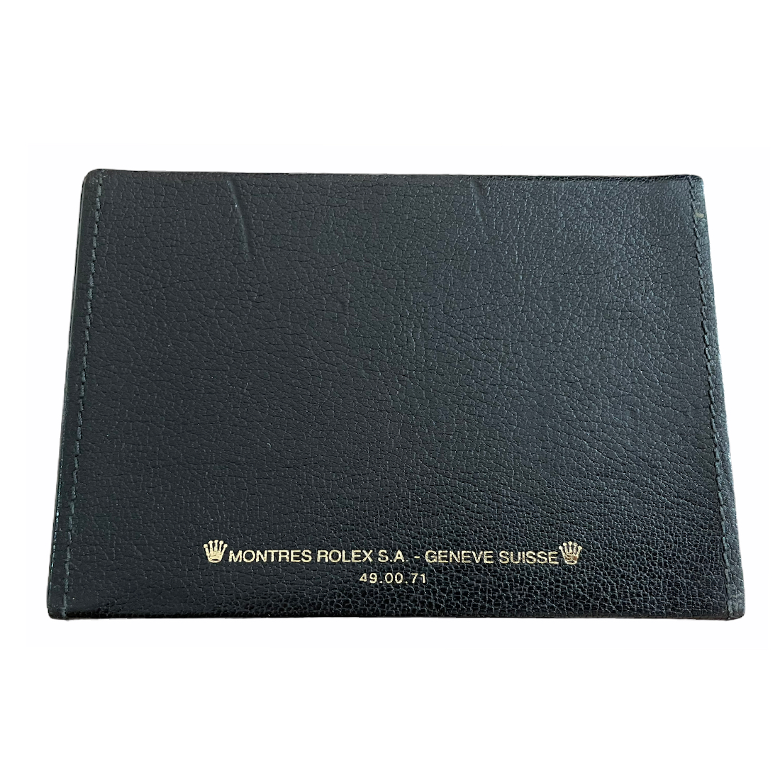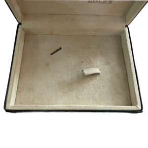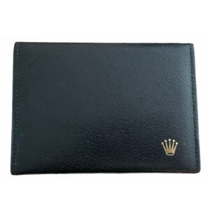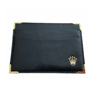 Тази предишна собственост кутия за часовник е изработена от черна кожа и включва кожен държач за карти, специално проектиран за часовници Rolex Cellini. С референтен номер 49.00.71, размерите на кутията са 15.2 x 11.8 x 4.6 см.