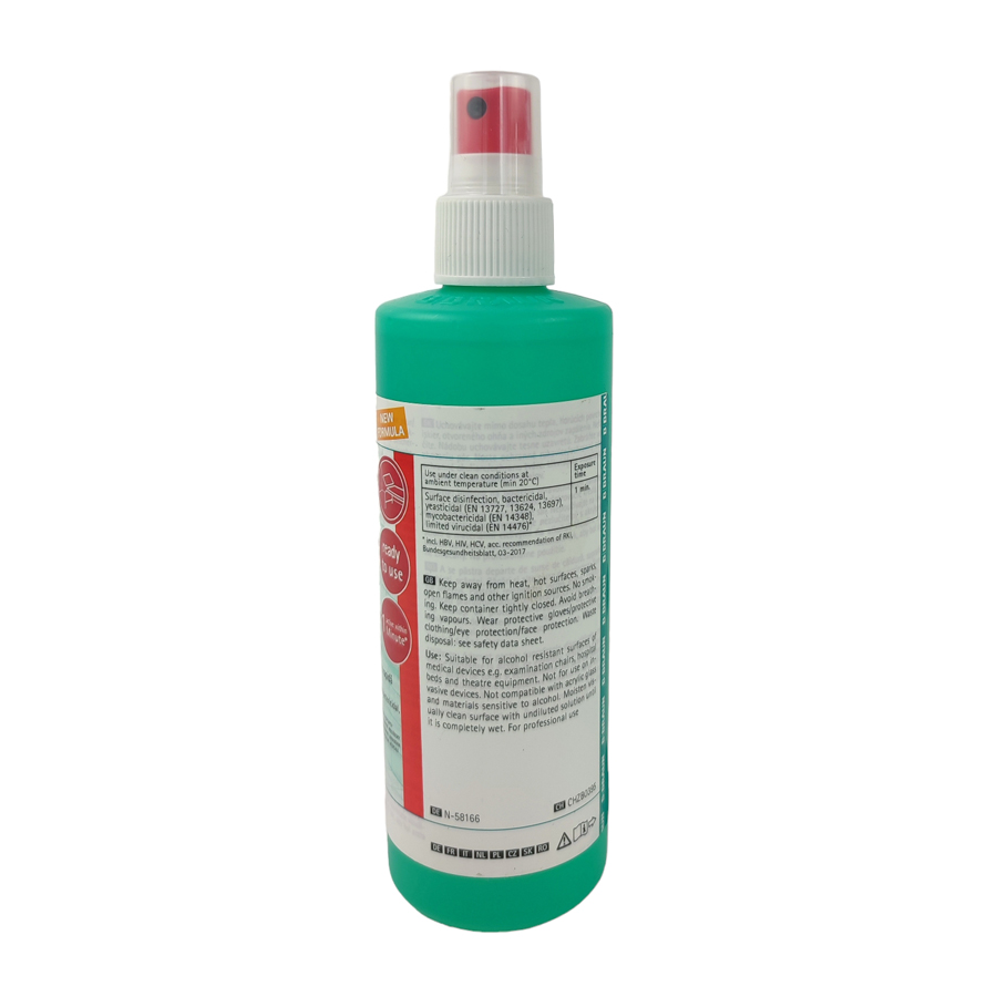 Дезинфектантът е наличен в опаковки от 250 мл с помпа, 1 литър без спрей или 5 литра в канистра.