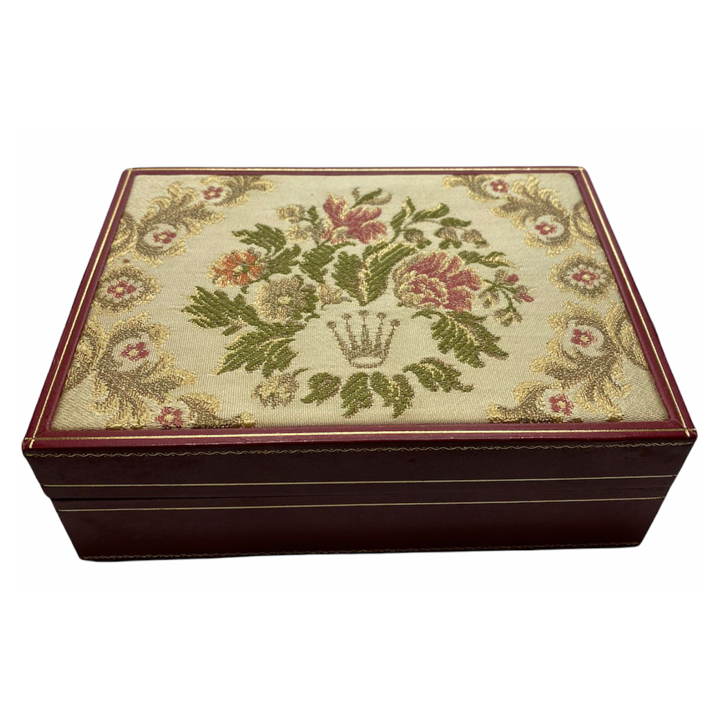 Предлагаме ви винтидж кутия за часовник Rolex President в червен цвят, с референтен номер 60.01.2. Тази кутия е идеална за съхранение на вашия часовник и добавя нотка на елегантност към всяка колекция.