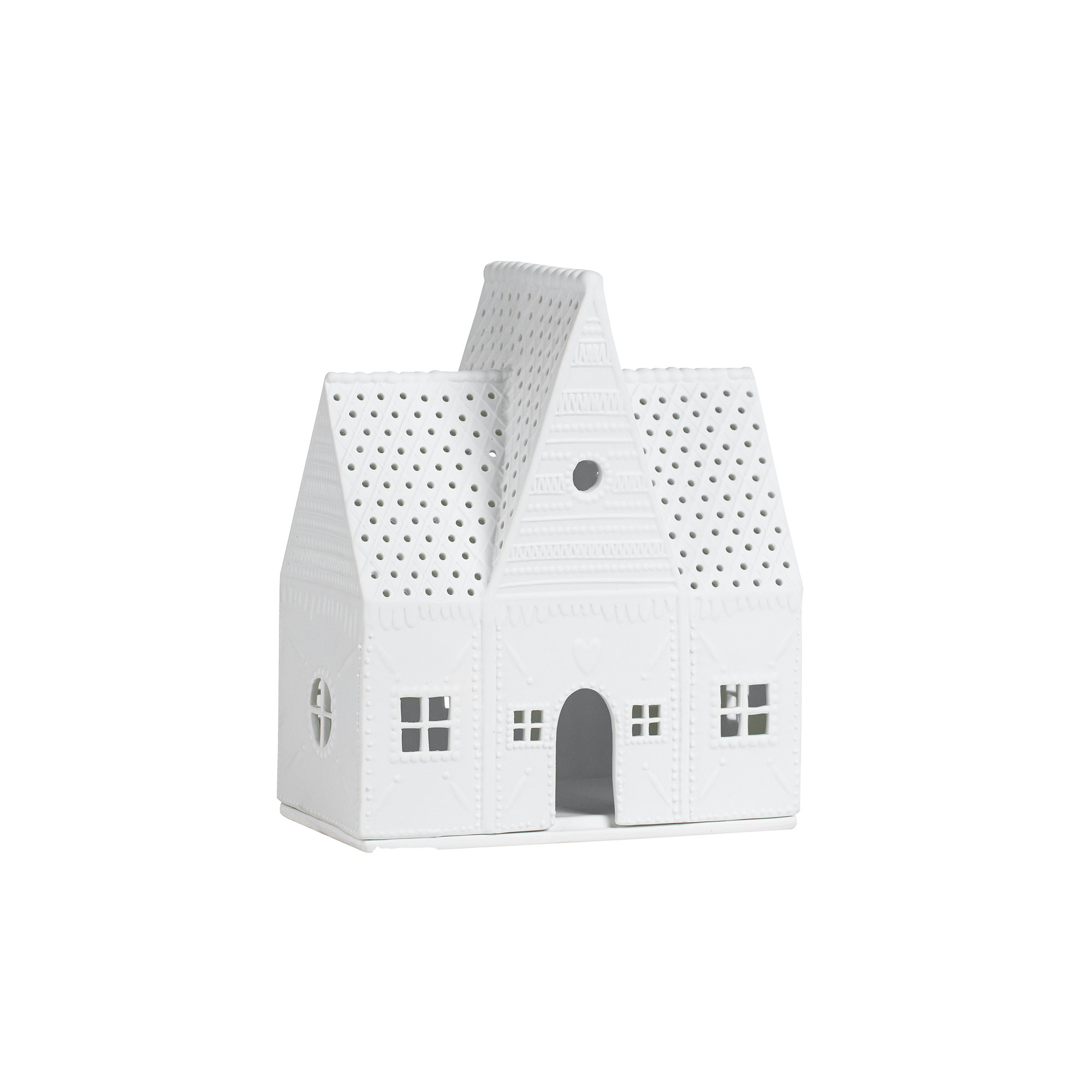 Тази очарователна свещник къща е в стил на джинджифилена къща, с изящен покрив. Просто добавете чаена свещ, за да създадете магическо сияние. Размер: 16.5 x 9 x 20 см.