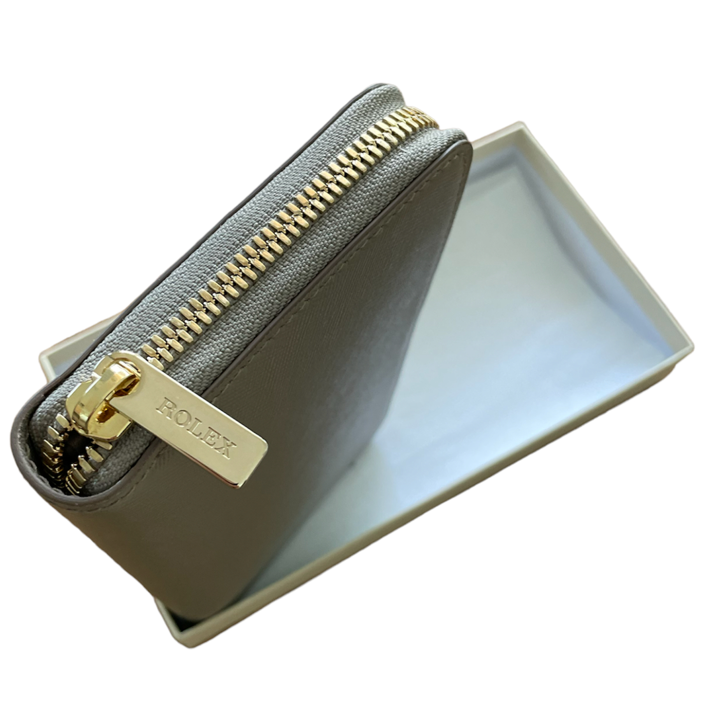Дамско дълго портмоне от кожа Rolex в сиво