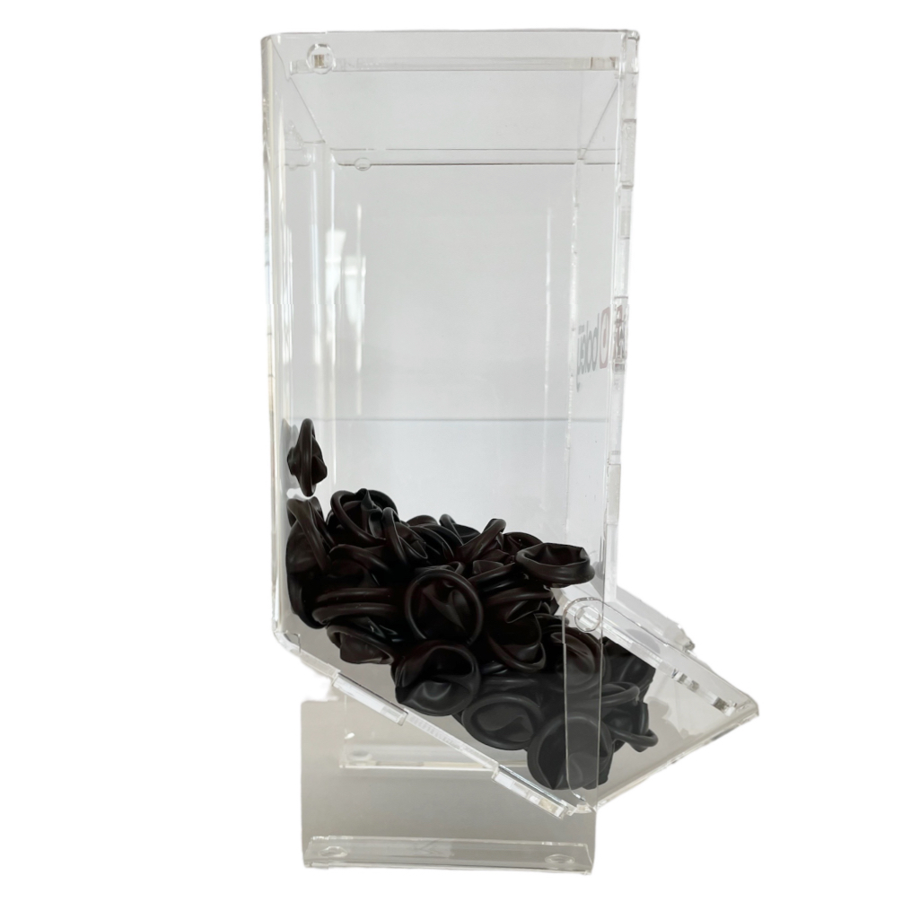 Тази малка и практична диспенсерна кутия е изработена от прозрачен акрил и разполага с две подвижни капачета, които осигуряват безопасно и чисто съхранение на пръстови капачки. Със здрава конструкция, кутията е подходяща за около 800 пръстови капачки.