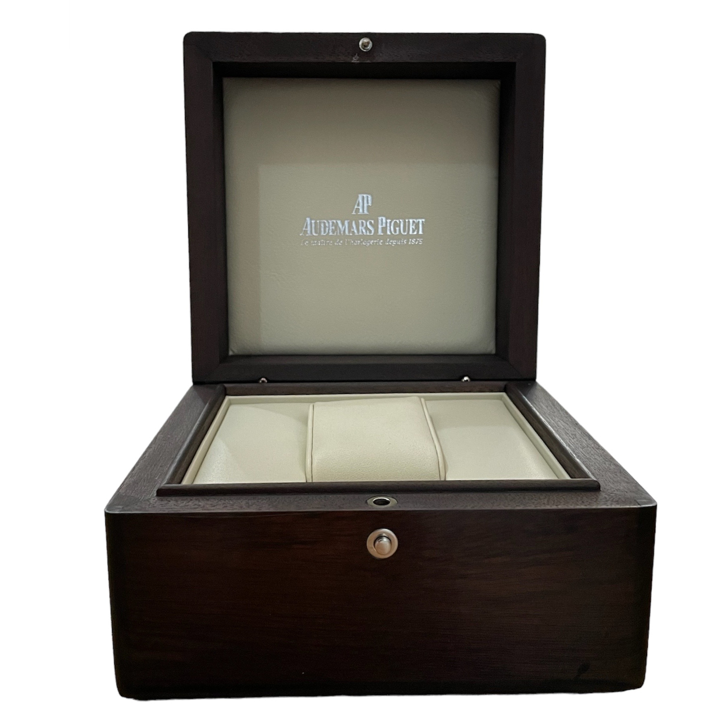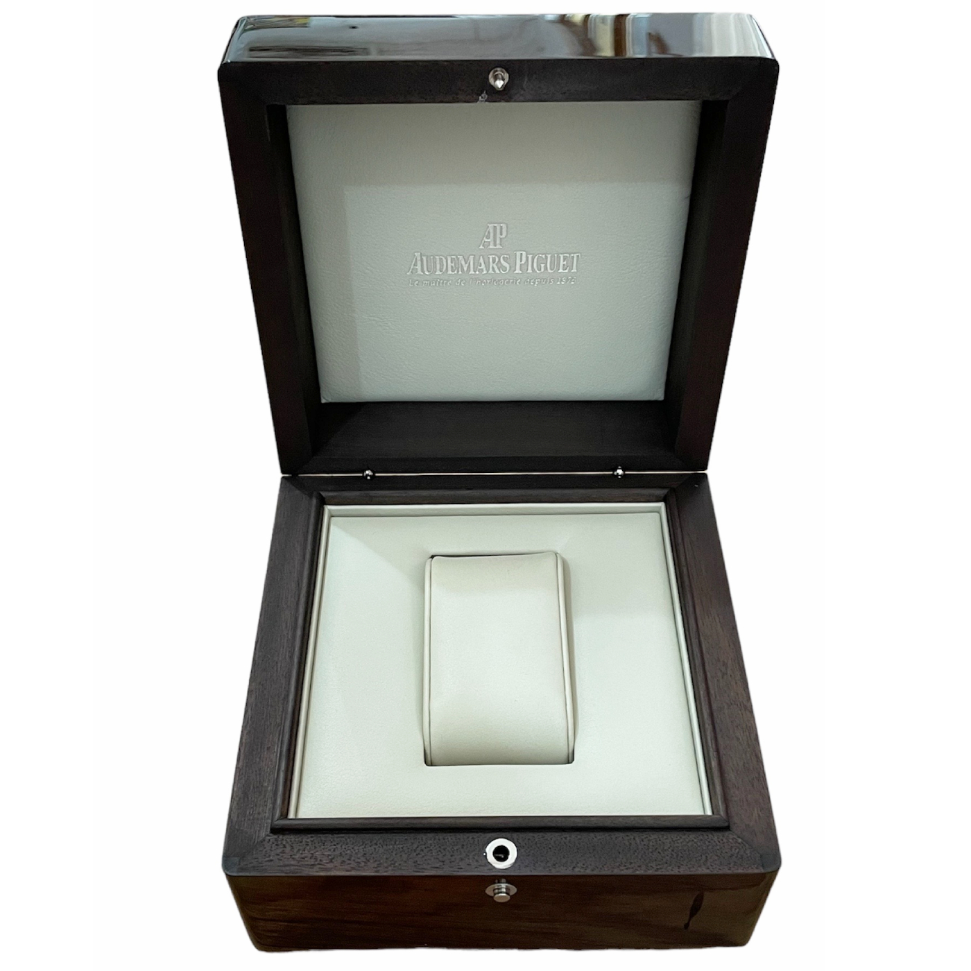 Тази елегантна дървена кутия за часовник Audemars Piguet е идеалното решение за съхранение на вашите ценни часовници. С размери 16 x 16 см, тя предлага достатъчно пространство за един часовник, осигурявайки му безопасност и стилен вид.
