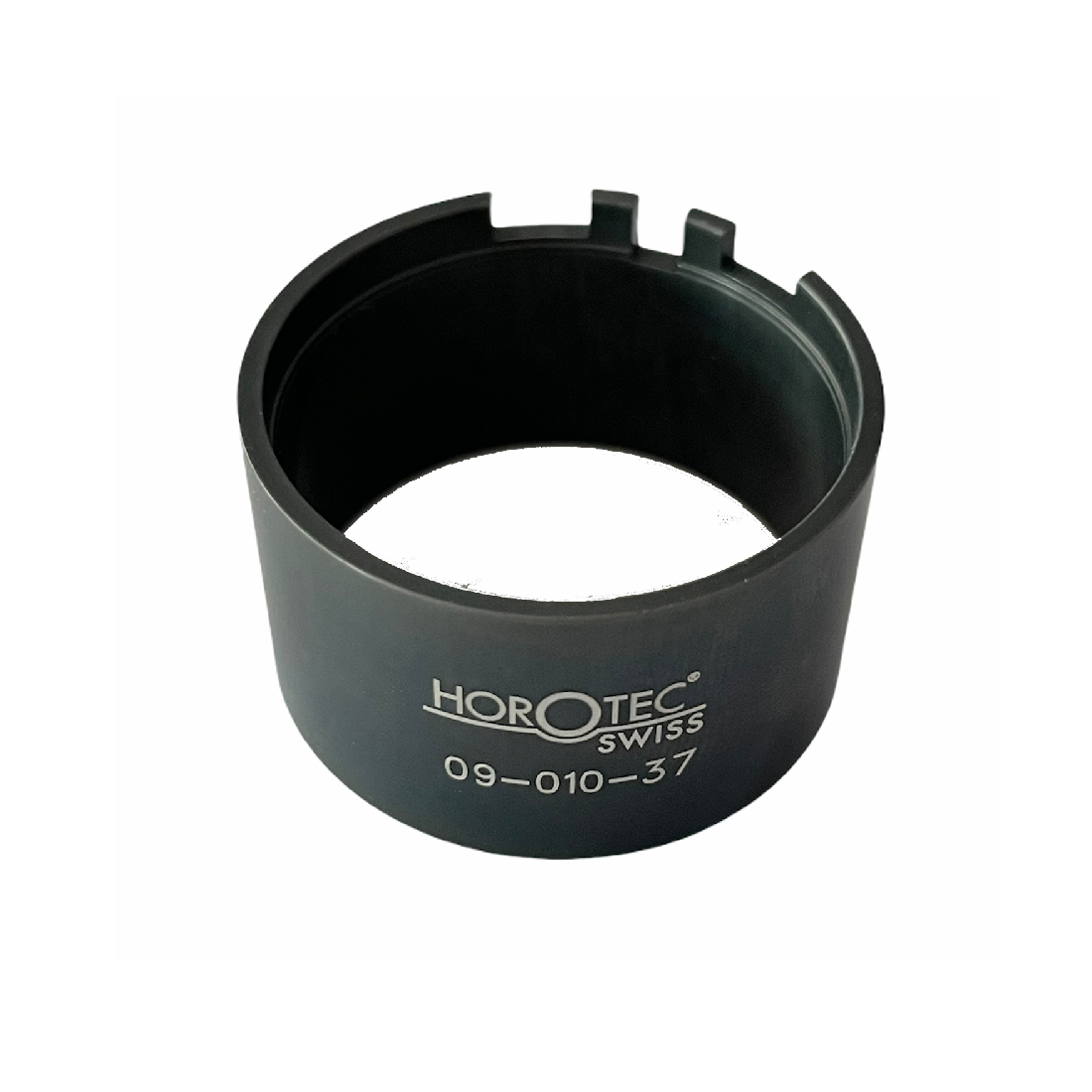 Държачът за механизми Horotec MSA 09.010-37 е изработен от анодизиран алуминий и е подходящ за механизми Omega 1045 и Lemania 5100. Той е проектиран с прорези, които позволяват лесен достъп до бутоните на механизма.