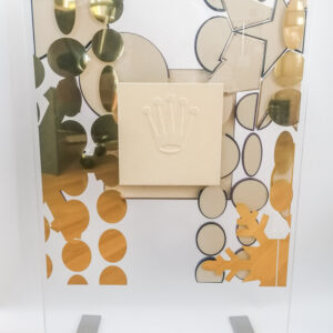 Представяме ви оригинален изложбен дисплей за часовници Rolex, в перфектно състояние. Този дисплей е идеален за бутици и колекционери, които искат да покажат своите часовници по елегантен начин.