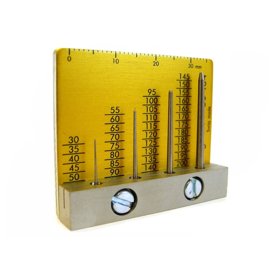 Инструментът за измерване на часовникови стрелки Bergeon 30464 е проектиран да улесни бързото и лесно измерване на оригиналния размер на отвора на стрелките, дори ако те са счупени. Лесен за употреба, просто плъзнете стрелката на часа или минутата върху щифта, който излиза от инструмента, и нежно натиснете надолу, докато стрелката спре. Така ще получите размера на отвора на стрелките и размера, необходим за оригиналния механизъм. Можете също така да измерите нова двойка стрелки по същия начин, за да се уверите, че са с правилния размер и ще паснат на оригиналния механизъм.