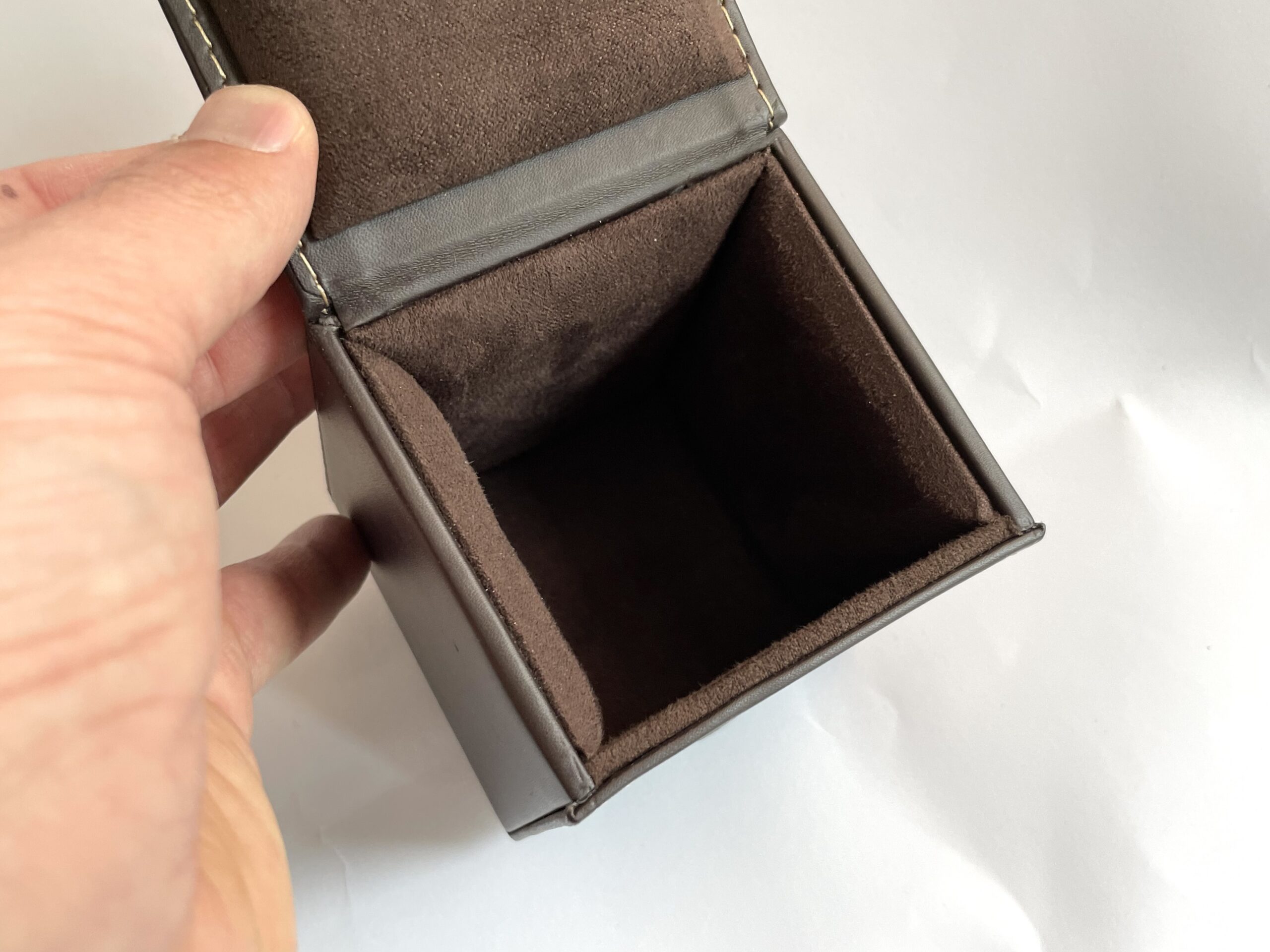 Този предварително използван кожен калъф за часовник Audemars Piguet е идеален за съхранение на вашия часовник по време на пътувания. Без подложка за часовник, той предлага стилно и безопасно решение за транспортиране.