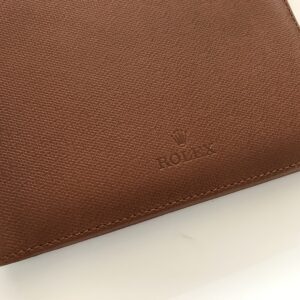 Тази предварително притежавана кожена папка за тефтер от Rolex е в перфектно състояние и е 100% оригинална. С елегантния си дизайн, тя е идеалният аксесоар за бизнес срещи или лични записки.