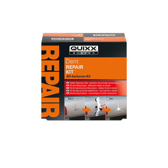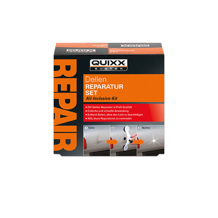 Вдлъбнатините могат да намалят стойността на автомобила и да направят дори добре поддържан автомобил да изглежда занемарен. Професионалният ремонт на вдлъбнатини може да струва стотици евро, но с комплекта за ремонт на вдлъбнатини QUIXX можете сами да се справите с много типични вдлъбнатини, използвайки включените инструменти. Комплектът е разработен и използван от професионалисти в ремонта и е предназначен за лесна, бърза и ефективна домашна употреба.