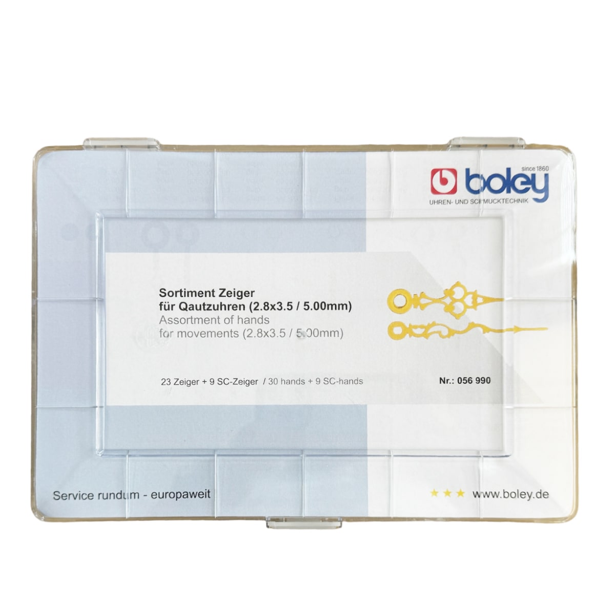Този практичен комплект предлага разнообразие от стрелки за кварцови механизми. Всички стрелки са с дълъг евро отвор, което ги прави подходящи за кварцови механизми UTS 838 и UTS 817. В комплекта ще намерите 23 двойки стрелки в жълт, хромиран и черен цвят.