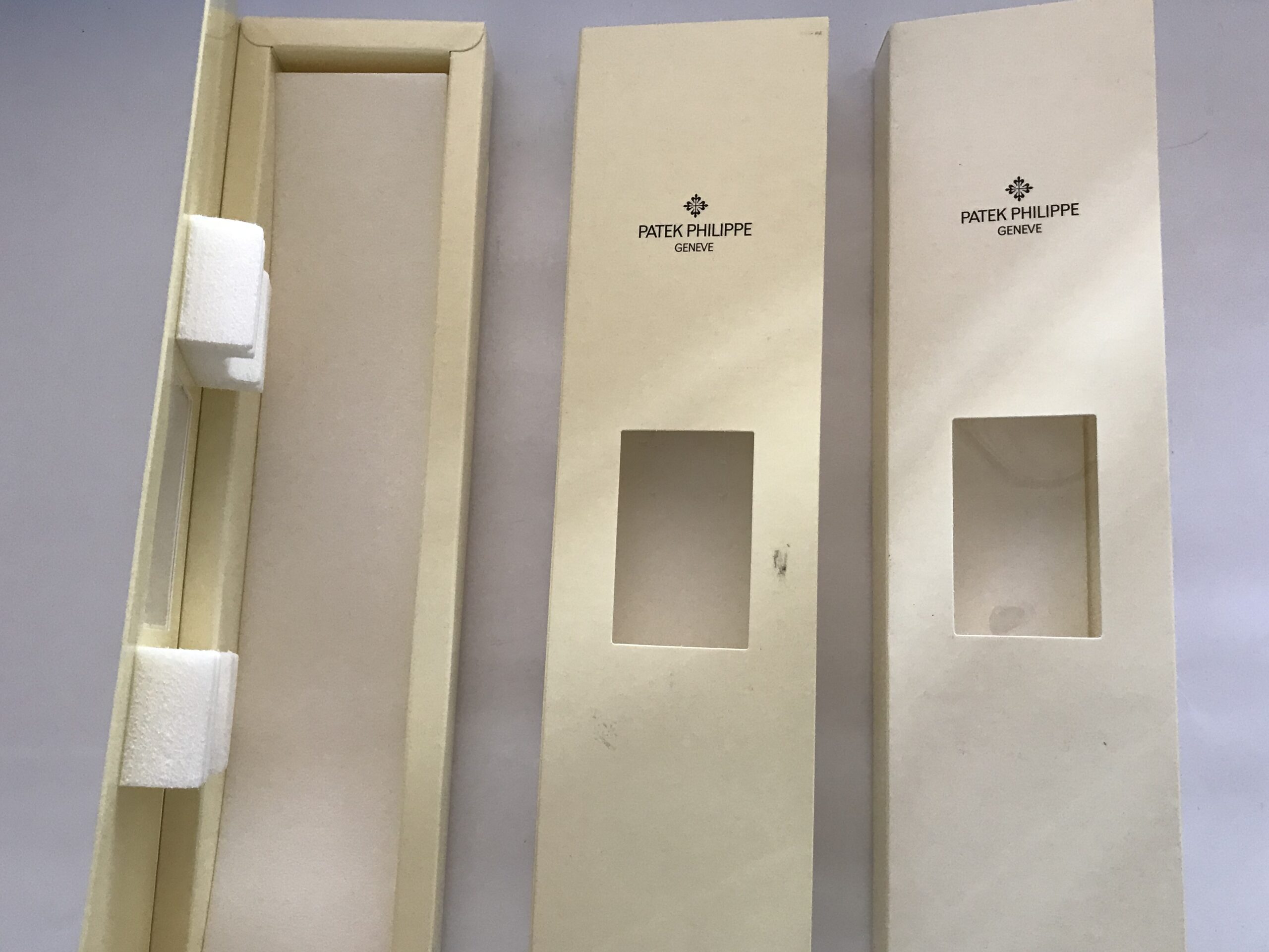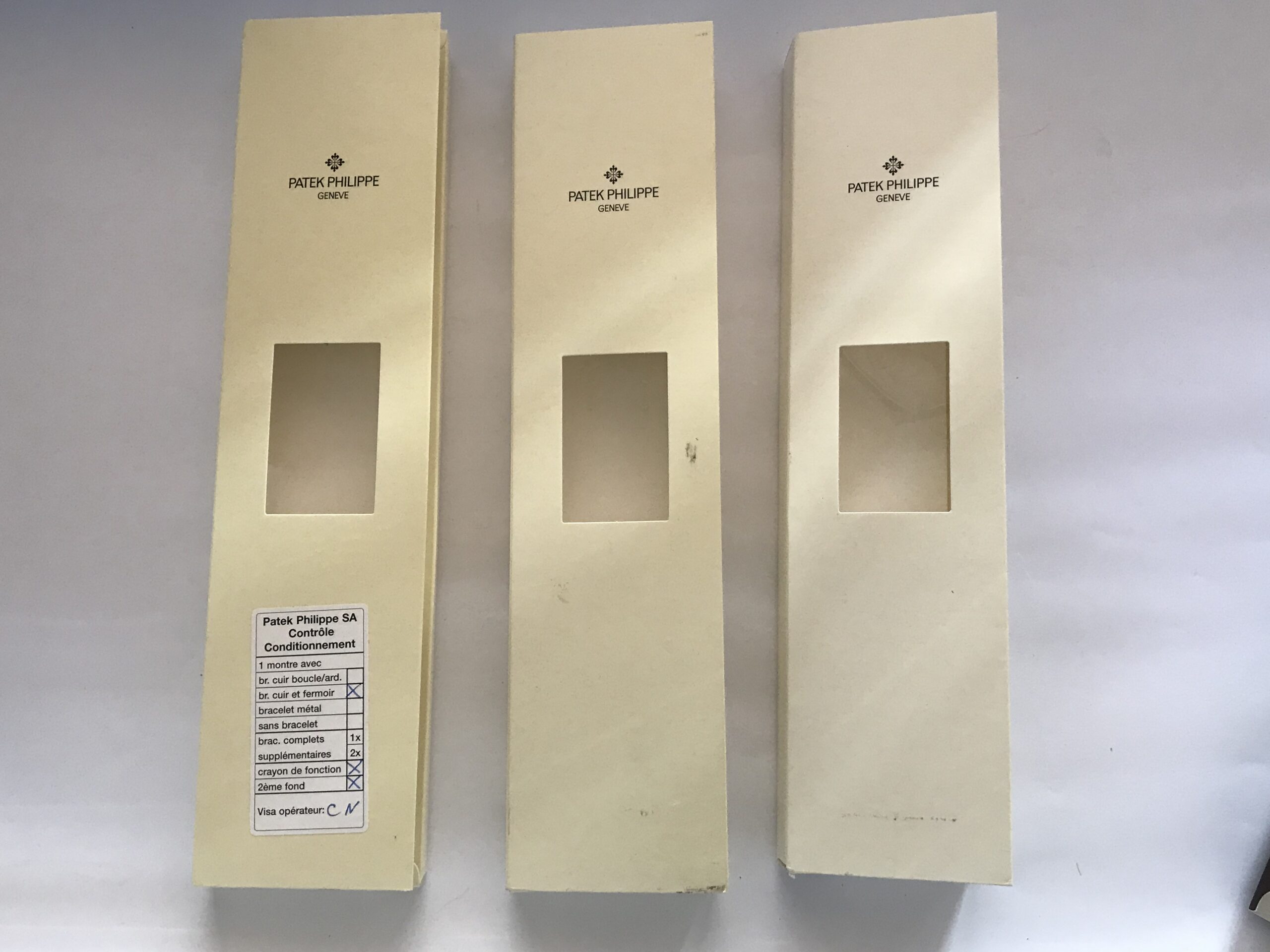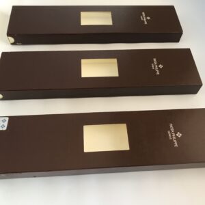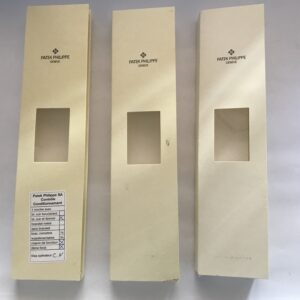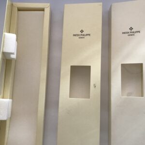 Този комплект от три пътни кутии е идеален за съхранение на вашите часовници Patek Philippe по време на пътувания. Кутиите са предварително използвани и предлагат стилен и безопасен начин за транспортиране на вашите ценни аксесоари.