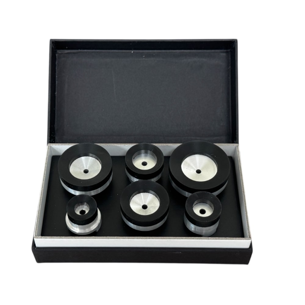 Комплектът Bergeon 5700-52-6 включва 6 горни всмукателни глави, изработени от мек адипрен, предназначени за работа с известния преса Bergeon 5700-Z. Тези висококачествени всмукателни глави осигуряват сигурен захват, без да надраскват или повреждат деликатни повърхности, което ги прави идеални за професионални часовникари и любители на хронометрията.