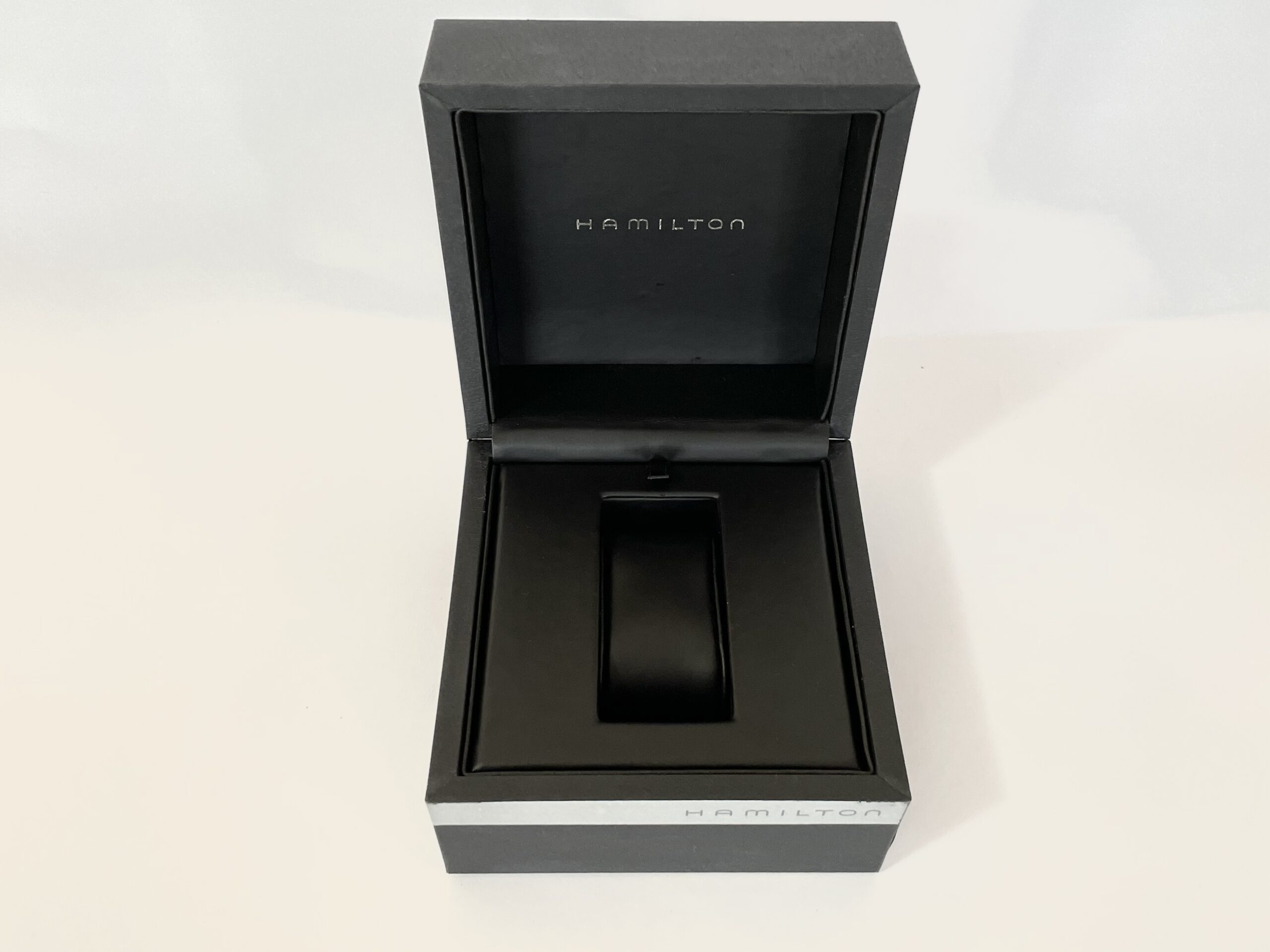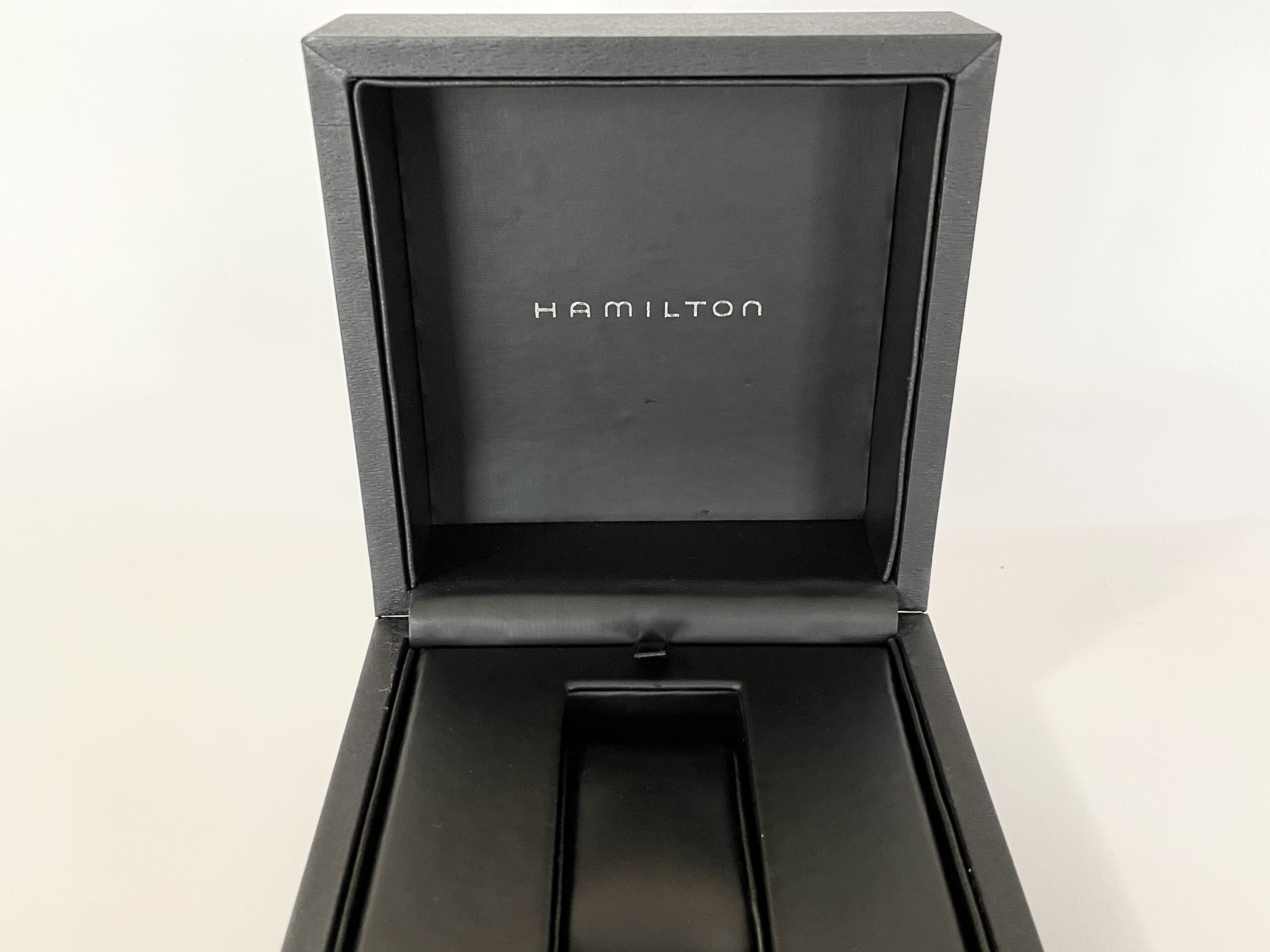 Предлагаме ви предварително използвана кутия за часовник Hamilton, която е в добро състояние. Тази елегантна кутия е идеална за съхранение на вашия часовник и осигурява защита от прах и повреди.