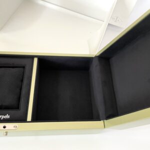 Представяме ви рядка голяма кутия за часовник от Van Cleef & Arpels. Тази елегантна и стилна кутия е идеална за съхранение на вашите ценни часовници и аксесоари.
