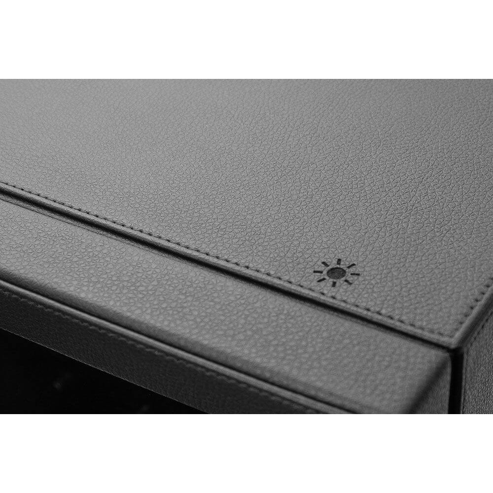 Тази елегантна кутия за часовници впечатлява с кожен вид и черен велур в интериора. Boxy BLDC разполага с вградена LED светлина, която може да се включва и изключва с леко докосване на иконата за светлина на корпуса. Устройството се захранва чрез включения USB кабел.