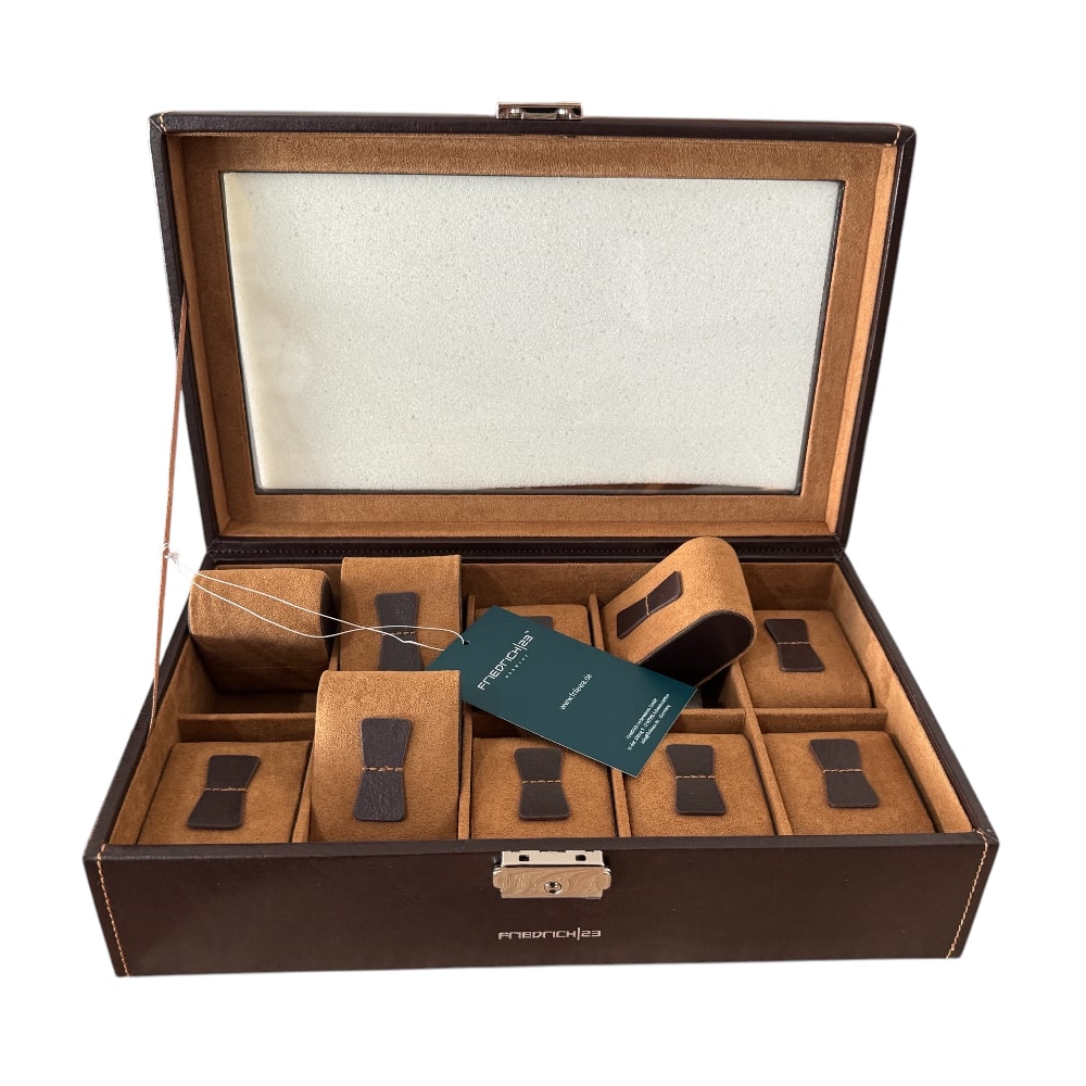 Кутия за часовници Friedrich23 от кафява кожа за 10 часовника