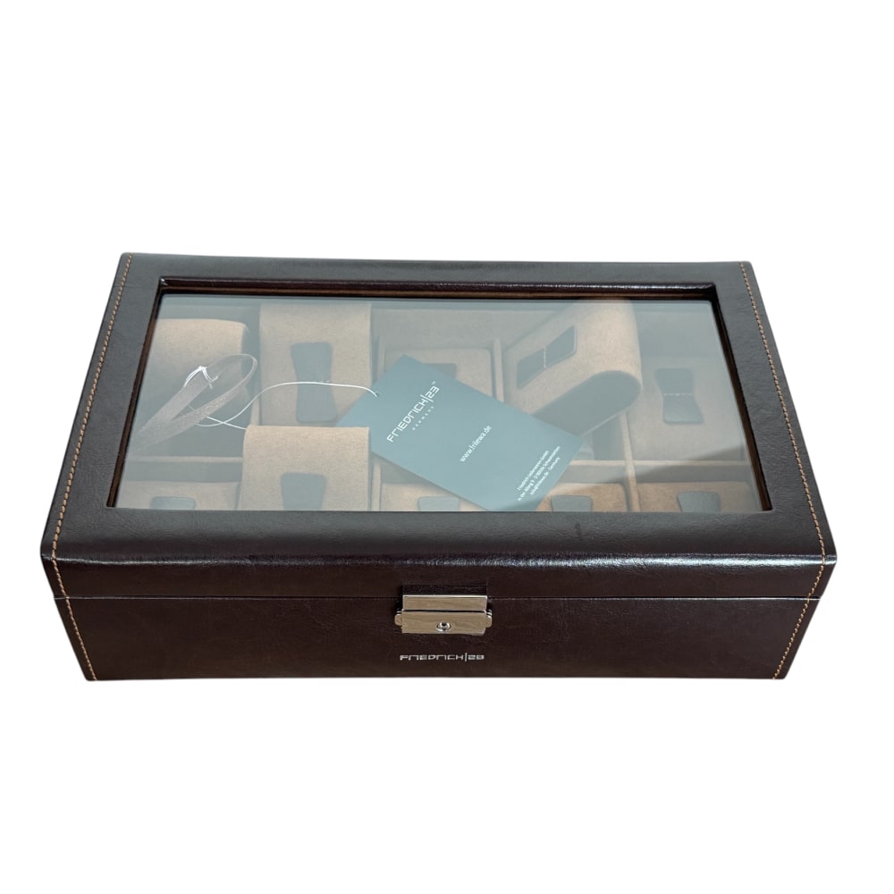 Независимо дали за лична употреба или като замислен подарък за колекционер на часовници, кутията за часовници Friedrich23 предлага перфектната комбинация от елегантност, защита и практичност.