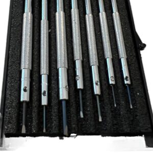 - 7-частен комплект с отвертки от 0.60 до 2.00 мм и сменяеми стоманени остриета