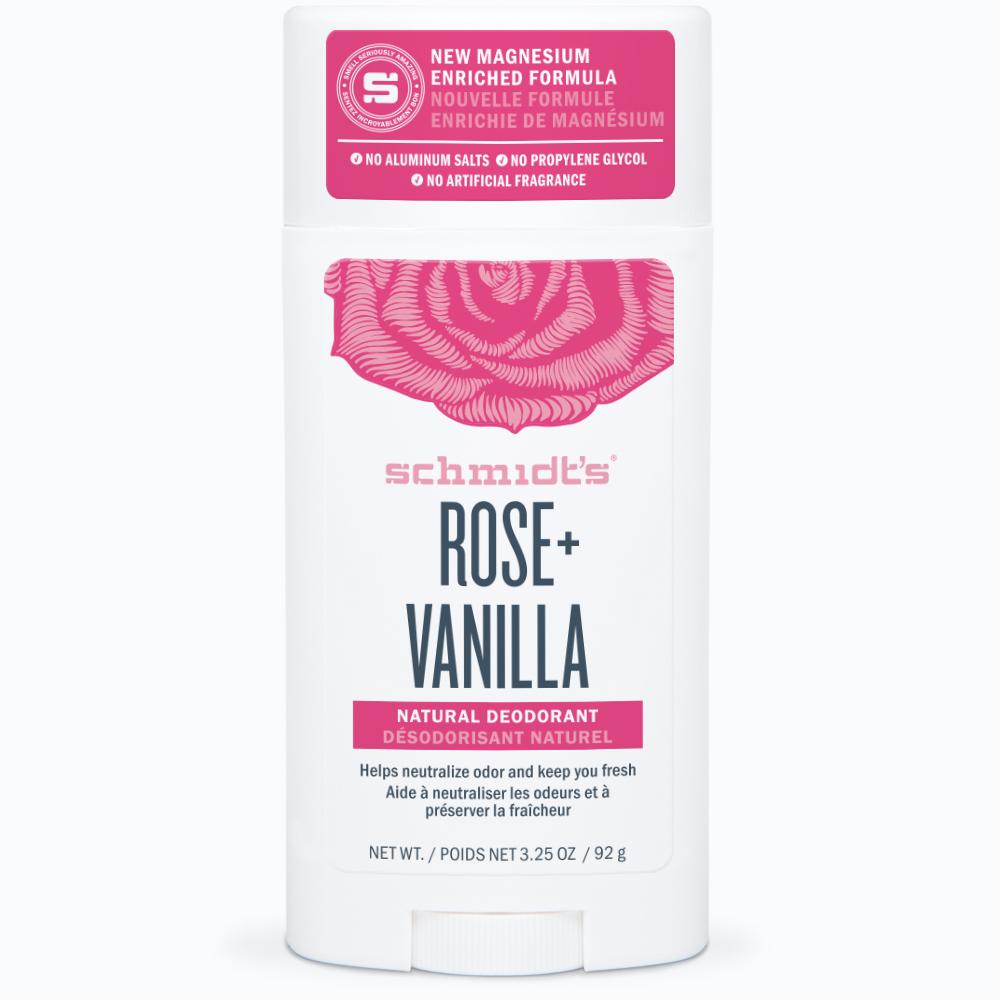 Насладете се на свежестта с натуралния дезодорант на Schmidt’s с аромат на роза и ванилия. Формулата, носител на награди, помага за неутрализиране на неприятните миризми и абсорбира влагата по естествен начин.