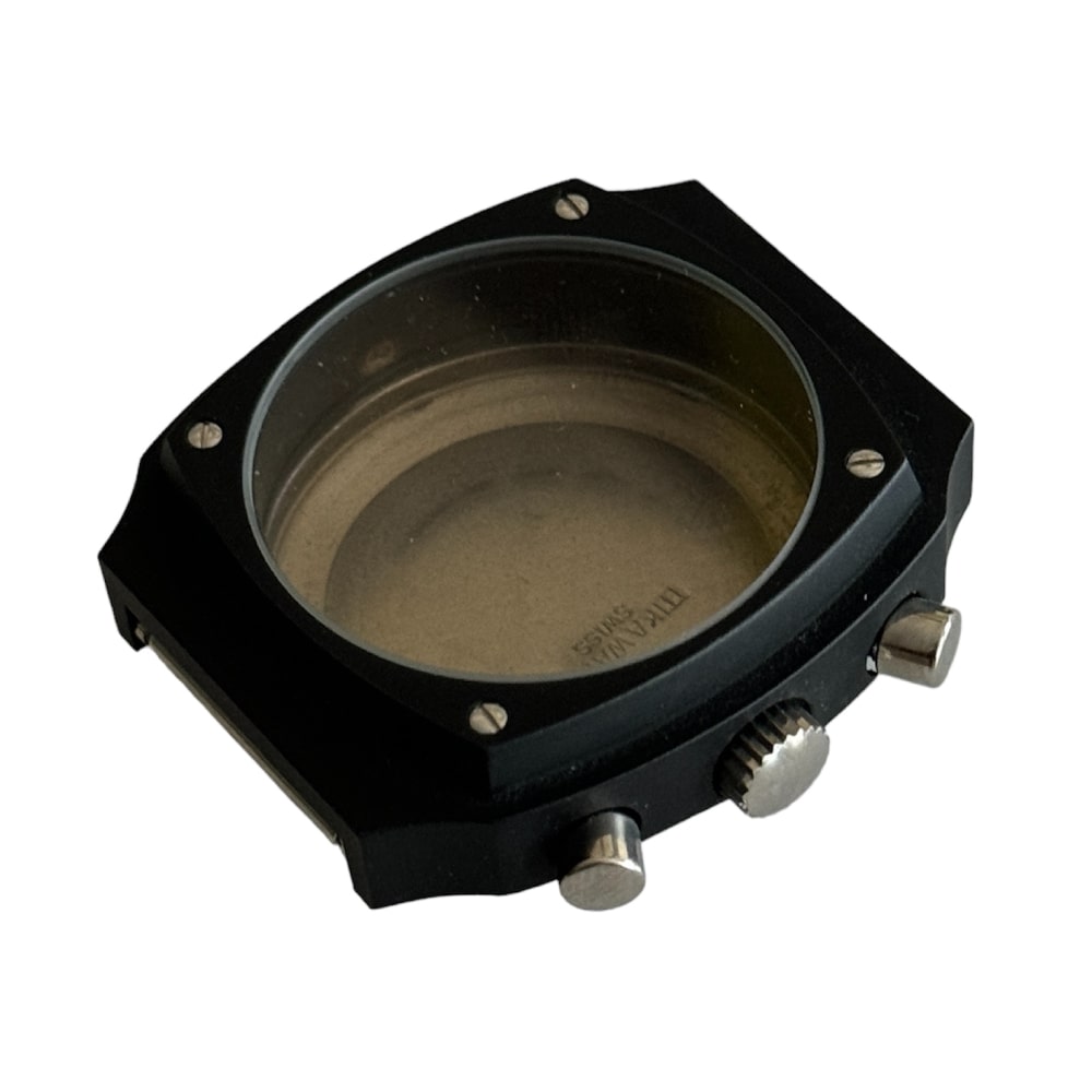 Този изключителен хронограф е представен в черно, с PVD покритие, което осигурява устойчивост и елегантен вид. Подходящ е както за оригинални ITIKA хронографи, така и за други винтидж часовници, използващи движението Valjoux 7750.