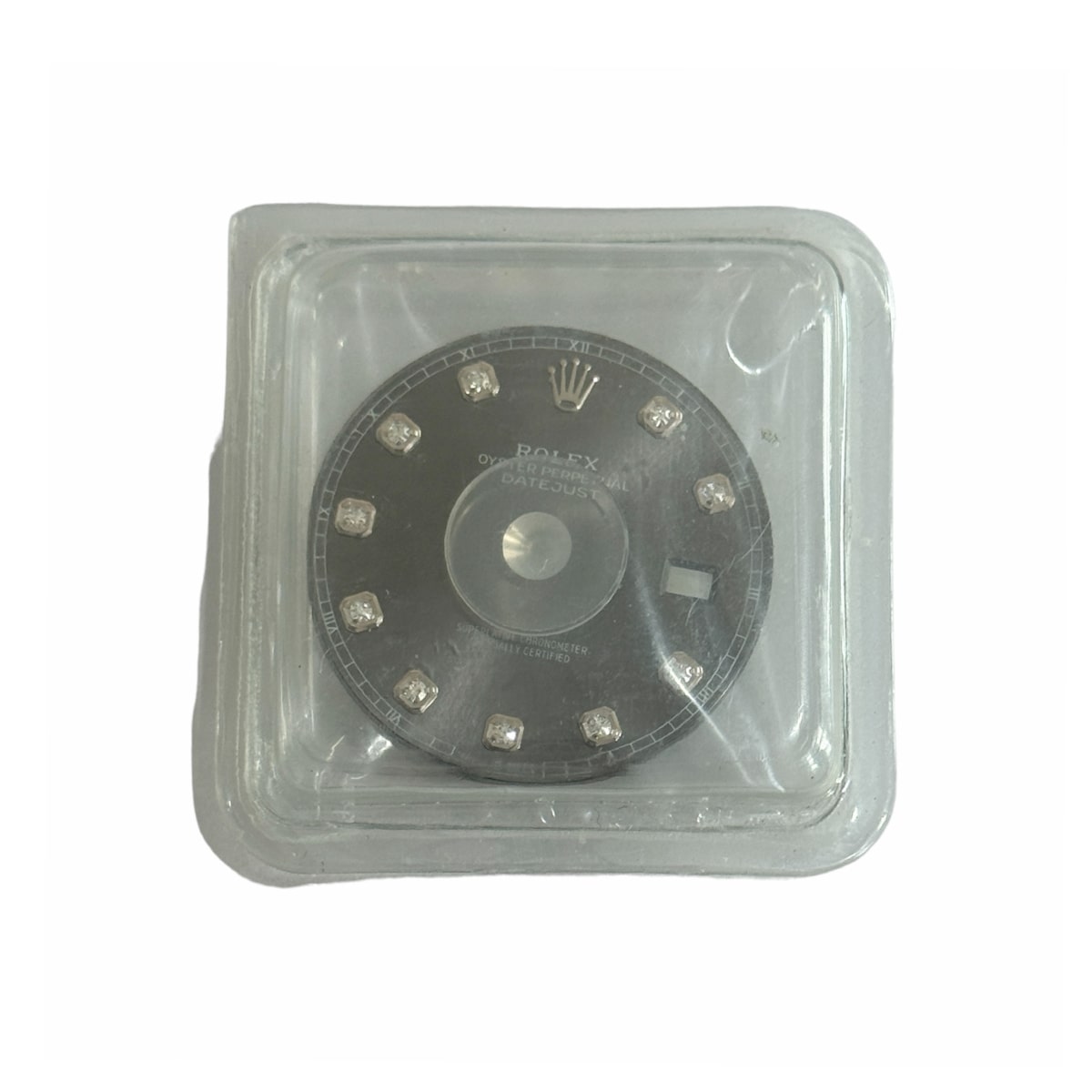 Този нов циферблат с брилианти е предназначен за часовници Rolex Datejust 126334. С елегантния си сив цвят, той придава стил и изтънченост на всяко часовникарско изделие.