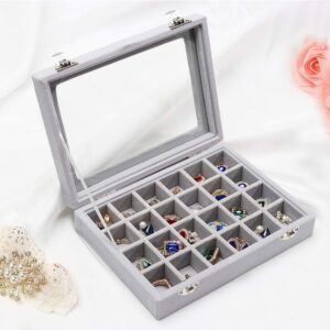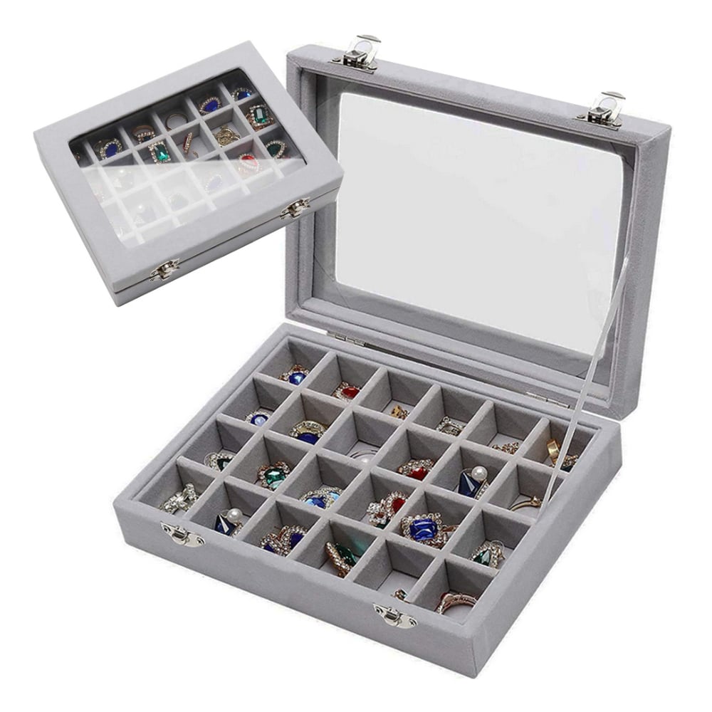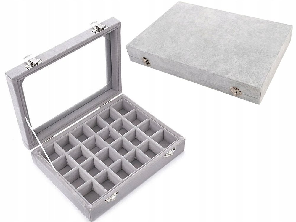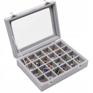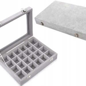 Органайзер за бижута с капак от стъкло, сив, 24 отделения – Gugita