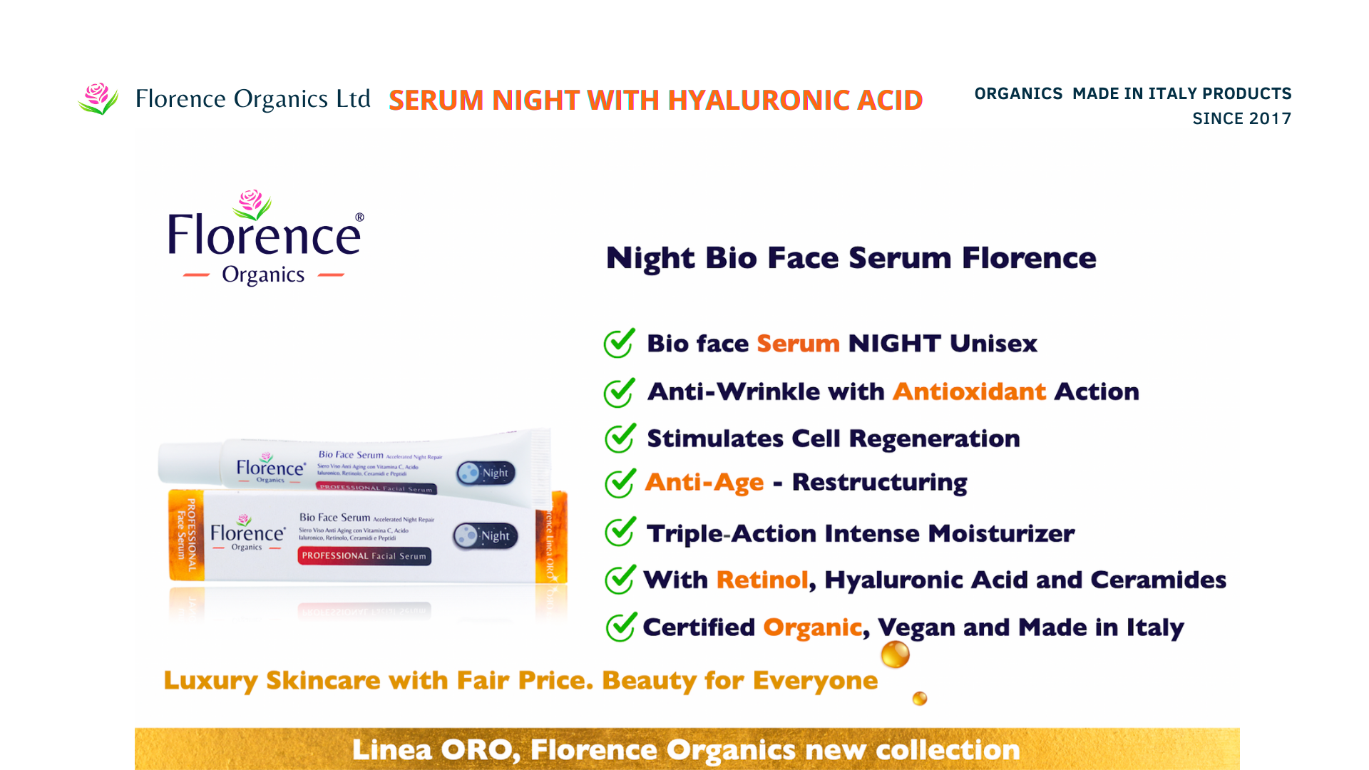 Органичен Нощен Серум за Кожа с Витамин C и Хиалуронова Киселина 30 мл. Florence Organics е мощностен анти-възрастов овлажнител, създаден да възстанови кожата ви през нощта.