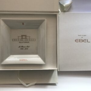 Този изискан пепелник от порцелан е част от колекцията на Ebel за 2016 година. Включва и книга, разказваща историята на марката Ebel, което го прави уникален и ценен артикул за колекционери и любители на луксозни аксесоари.