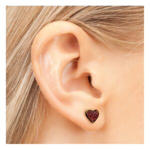 Сърцевидни обеци с червен брокат STUDEX 5 мм