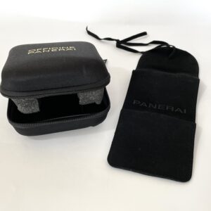 Тази пътна кутия за часовник Panerai е идеалното решение за безопасно съхранение и транспортиране на вашия часовник. Изработена от висококачествен найлон, тя предлага надеждна защита, докато велуреният калъф добавя допълнителен елегантен щрих.