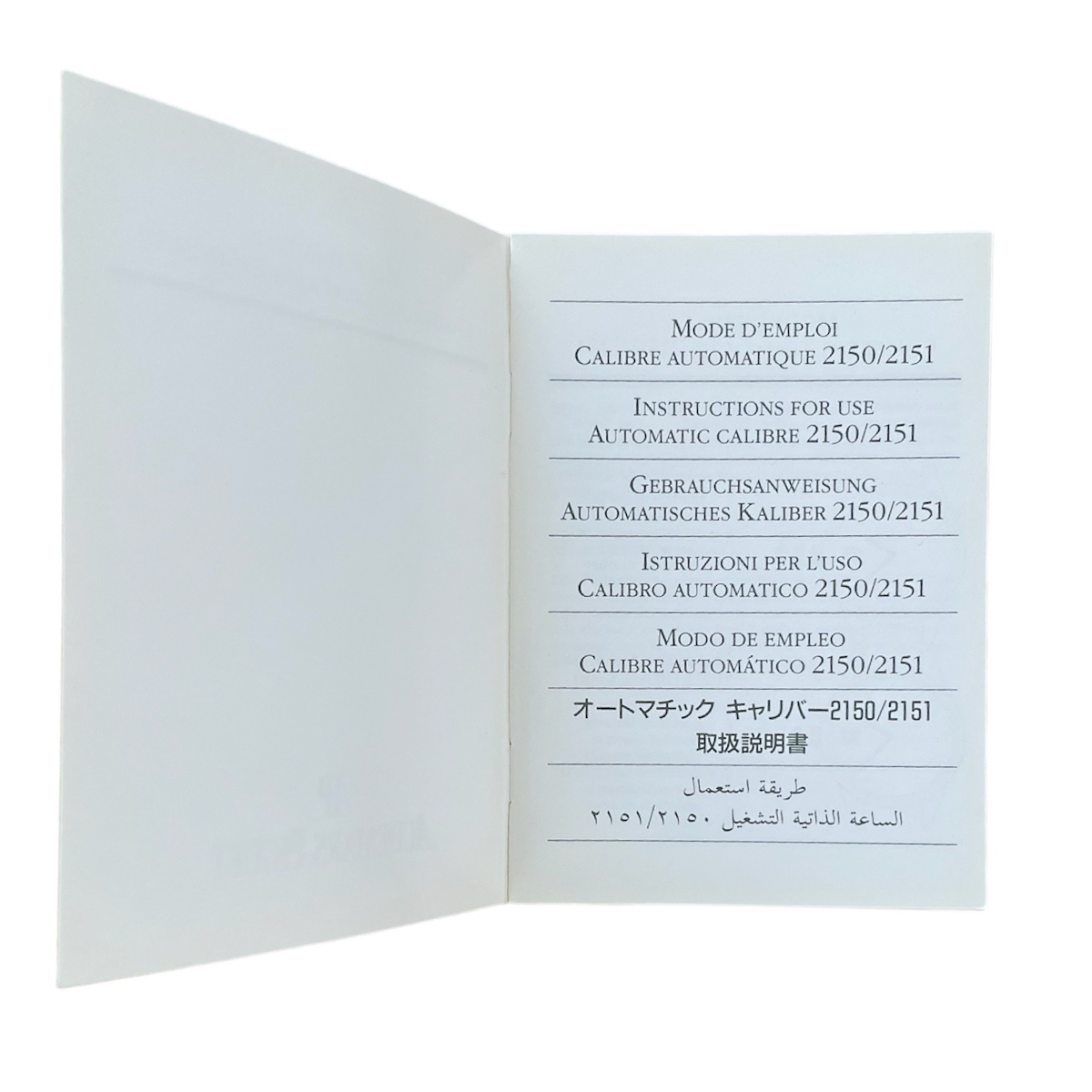 Това ръководство за употреба предоставя изчерпателни инструкции за правилното обслужване и поддръжка на вашите автоматични часовници Audemars Piguet модели 2150 и 2151. Представените насоки са предназначени да гарантират оптимална производителност и дълготрайност на вашите прецизни механични часовници.