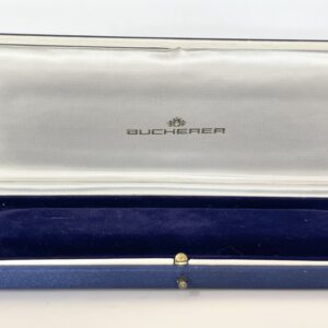 Представяме ви стилна синя кутия за мъжки часовници от известната марка Bucherer, произведена през 1960-те години. Тази кутия е идеална за съхранение на вашите часовници, осигурявайки им защита и елегантен вид.