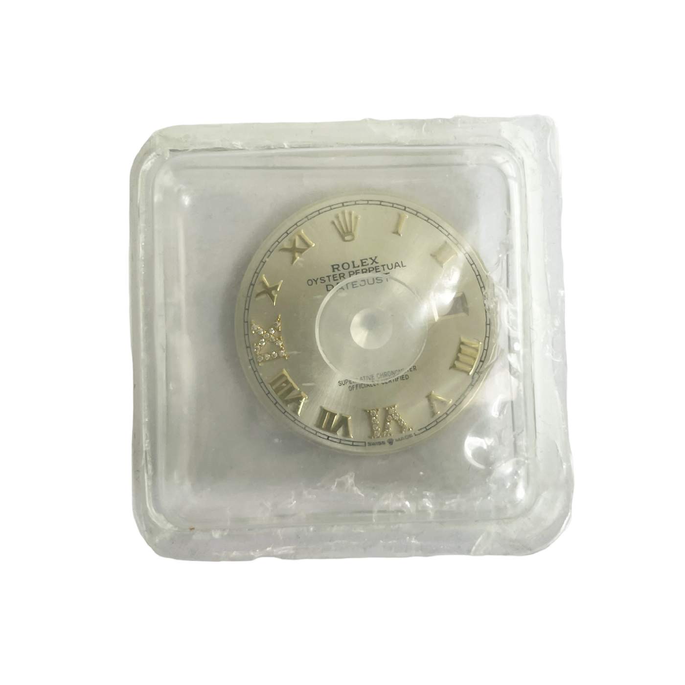 Този нов сребърен циферблат е предназначен за Rolex Datejust 36мм и е украсен с елегантни римски цифри и диаманти. Със своята изискана визия, той добавя нотка на лукс към вашия часовник.