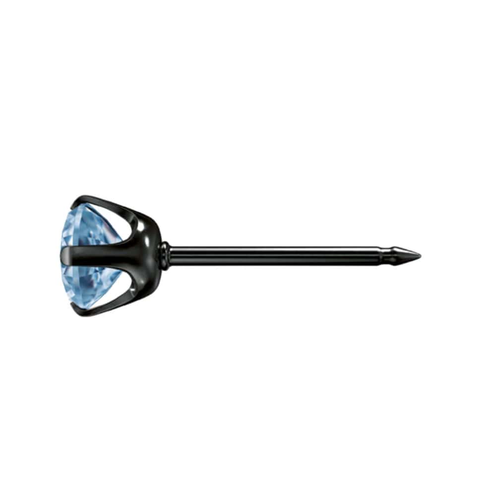 Сребърни обеци Studex с черна стомана и синя кубична циркония, 4 мм