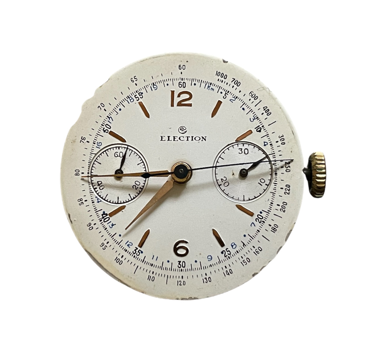 Предлагаме ви употребяван хронограф с механизъм Valjoux 22. Този продукт е подходящ за ремонт или за части, тъй като има повреден балансен вал. Идеален за часовникари или колекционери, които търсят резервни части или желаят да възстановят старинно устройство.