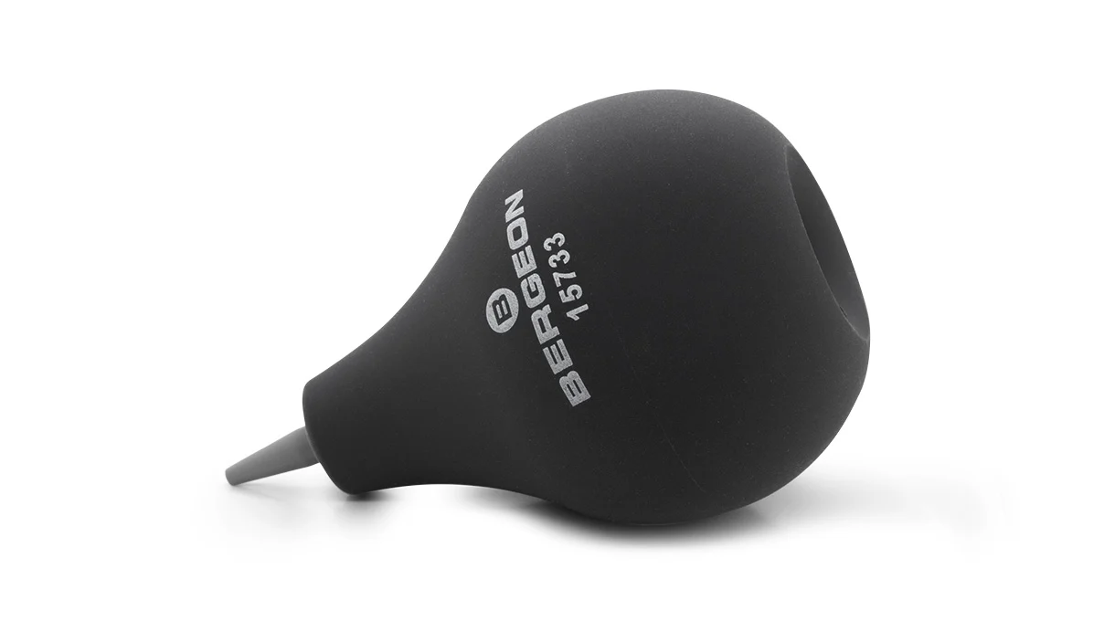 Чрез просто натискане на гуменото тяло, вентилаторната тръба произвежда контролиран поток от въздух, който помага за разпръскване на прах и отломки, дори от тесни и труднодостъпни места. Това я прави незаменима за ремонт, обслужване, монтаж и инспекция на часовници, където чистотата е критична.