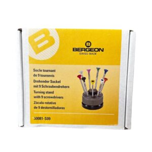 Комплекта на Bergeon 30081-S09 се състой от 9 броя професионални отвертки с въртяща се основа.