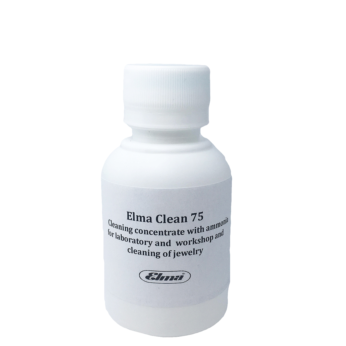 Концентратът за почистване Elma Clean 75 е идеален за почистване на бижута, лабораторни и работни инструменти. Съдържа амоняк и е водоразтворим, което го прави ефективен за използване в ултразвукови устройства и машини за почистване на часовници.