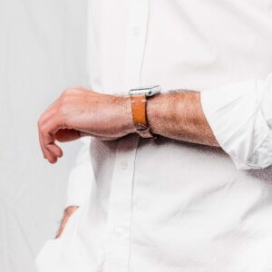 Изработена от специално обработена телешка кожа, тази каишка е не само красива, но и изключително удобна. Подходяща е за ежедневна употреба и добавя нотка елегантност към вашия стил.