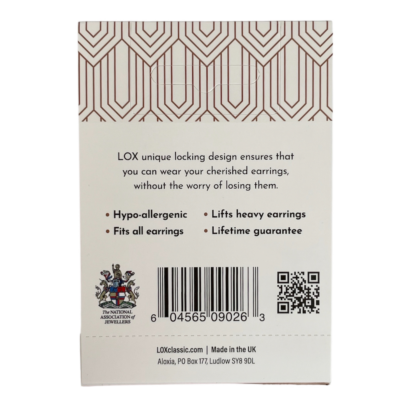 Запазете вашите обеци безопасни и сигурни с уникалните заключващи задни части на LOX. Те са удобни, хипоалергенни и лесни за употреба, което ги прави идеални за всички видове обеци. С гаранция за доживотна употреба, можете да се доверите на LOX да защити вашите ценни обеци.