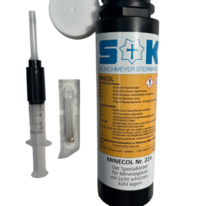 UV лепилото Minecol е специално проектирано за залепване на минерални кристали. То бързо и безопасно втвърдява под UV светлина, което го прави идеален за ремонт на часовници и други стъклени изделия. В комплекта ще намерите:
