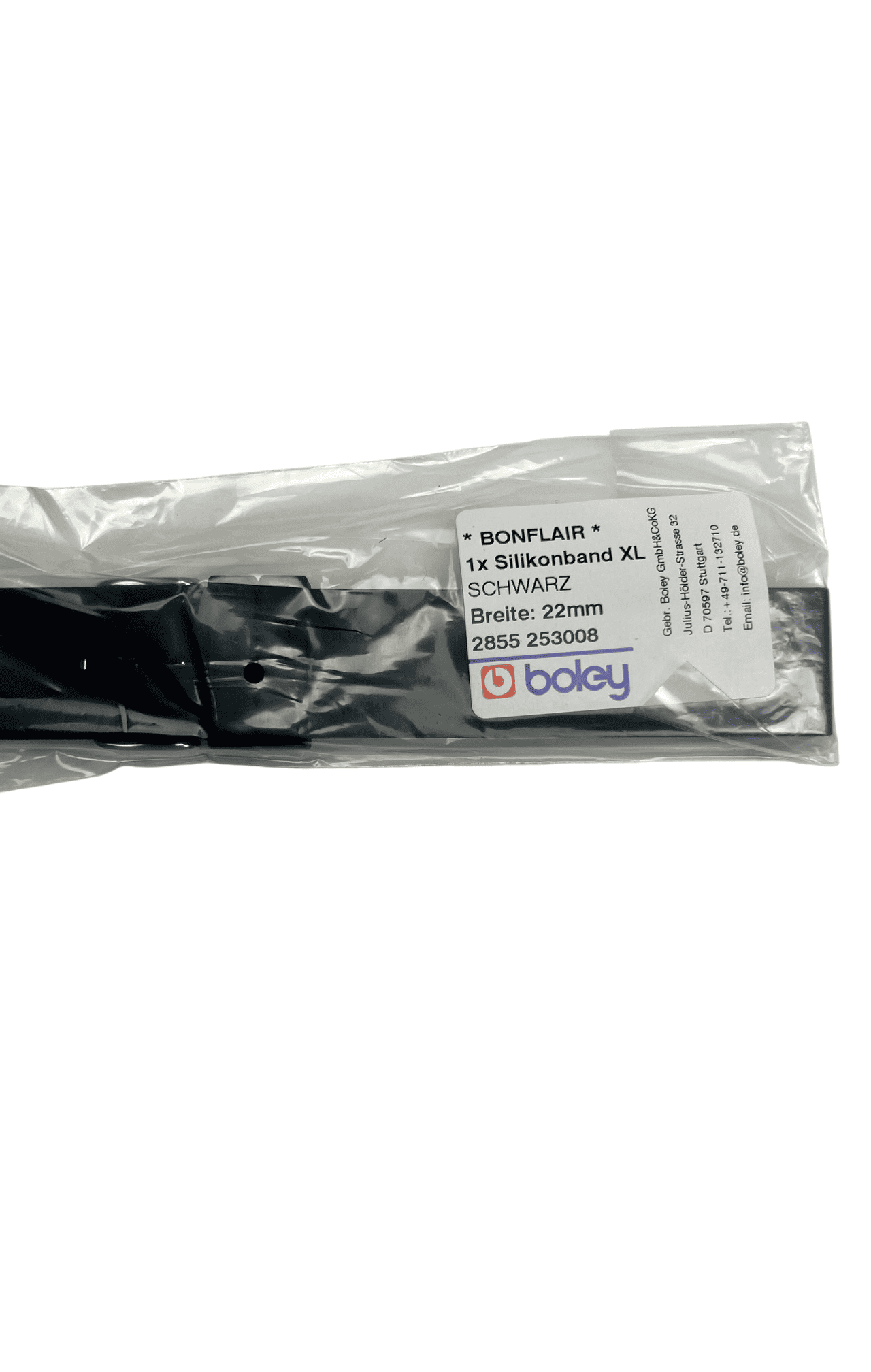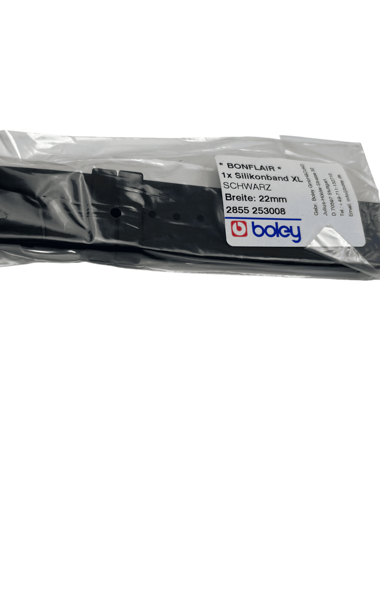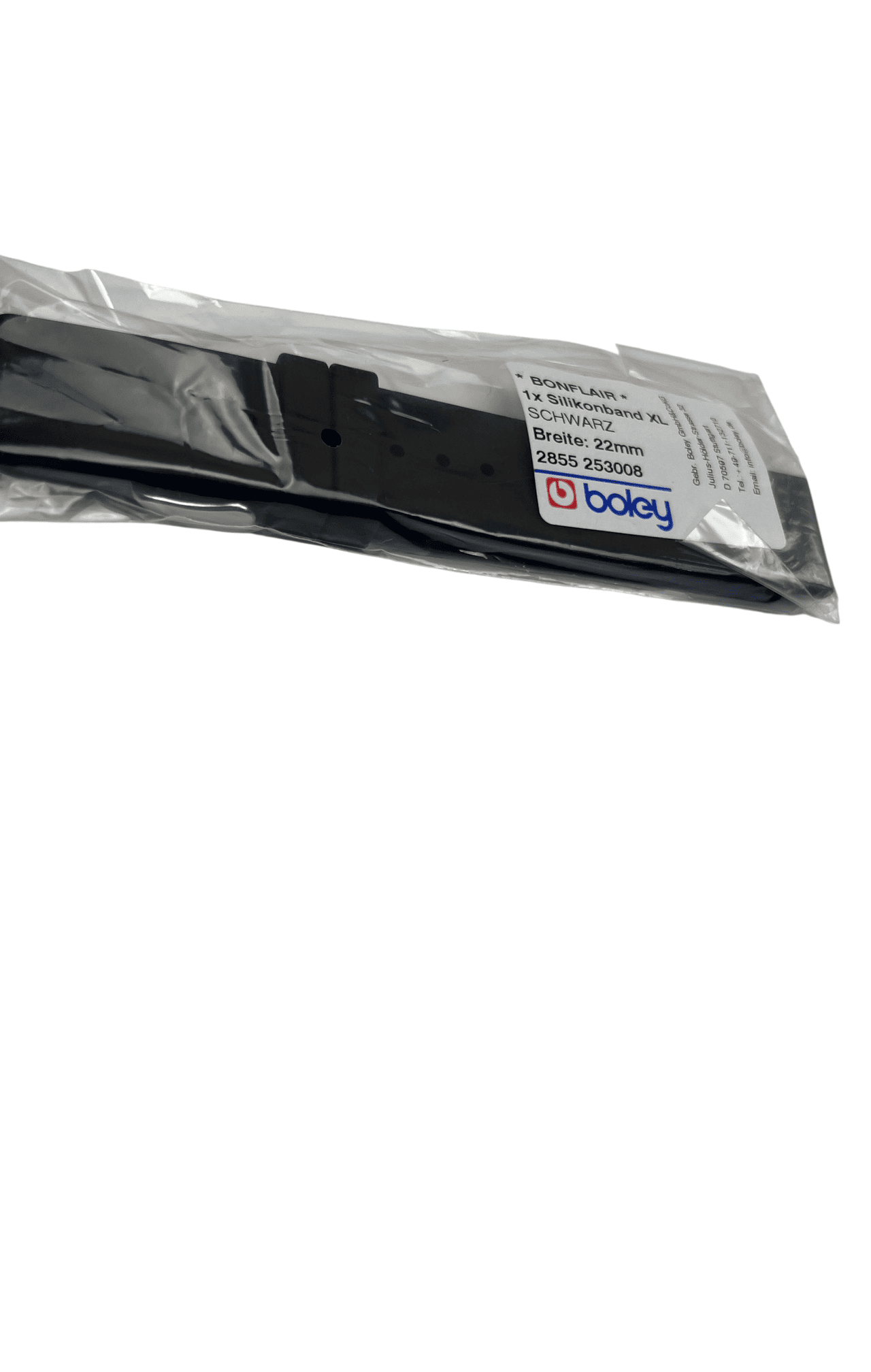 XL силиконова каишка Boley, Черна, 22 мм, Удължена версия